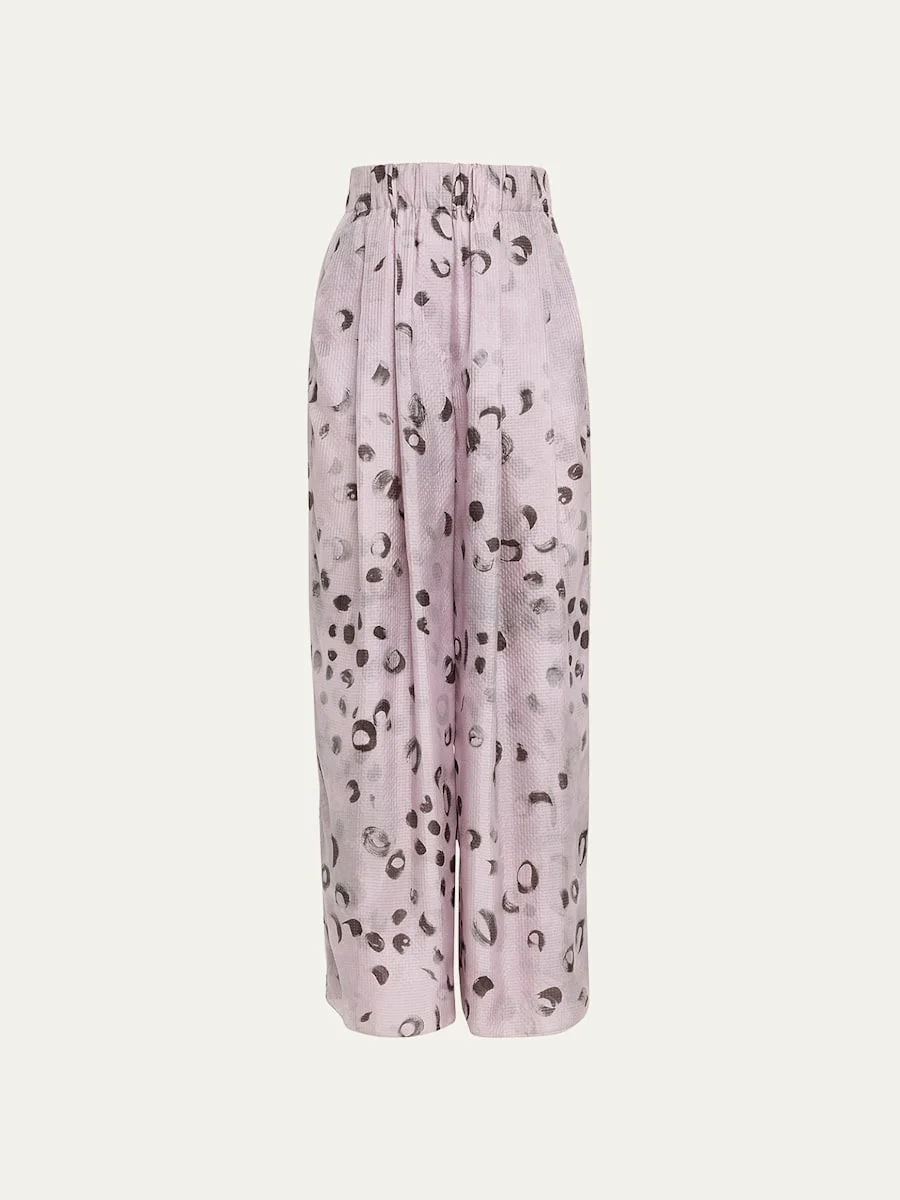Giorgio Armani silk wide-leg pants with a printed styling Flat front High rise; elastic waistband Side slip pockets Full length Pull-on style Relaxed fit Triacetate/polyester Dry clean Made in Italy Model is 5'10"/177cm. Online Inquiries: BGS21_B83A3| Store Inquiries: #4466792