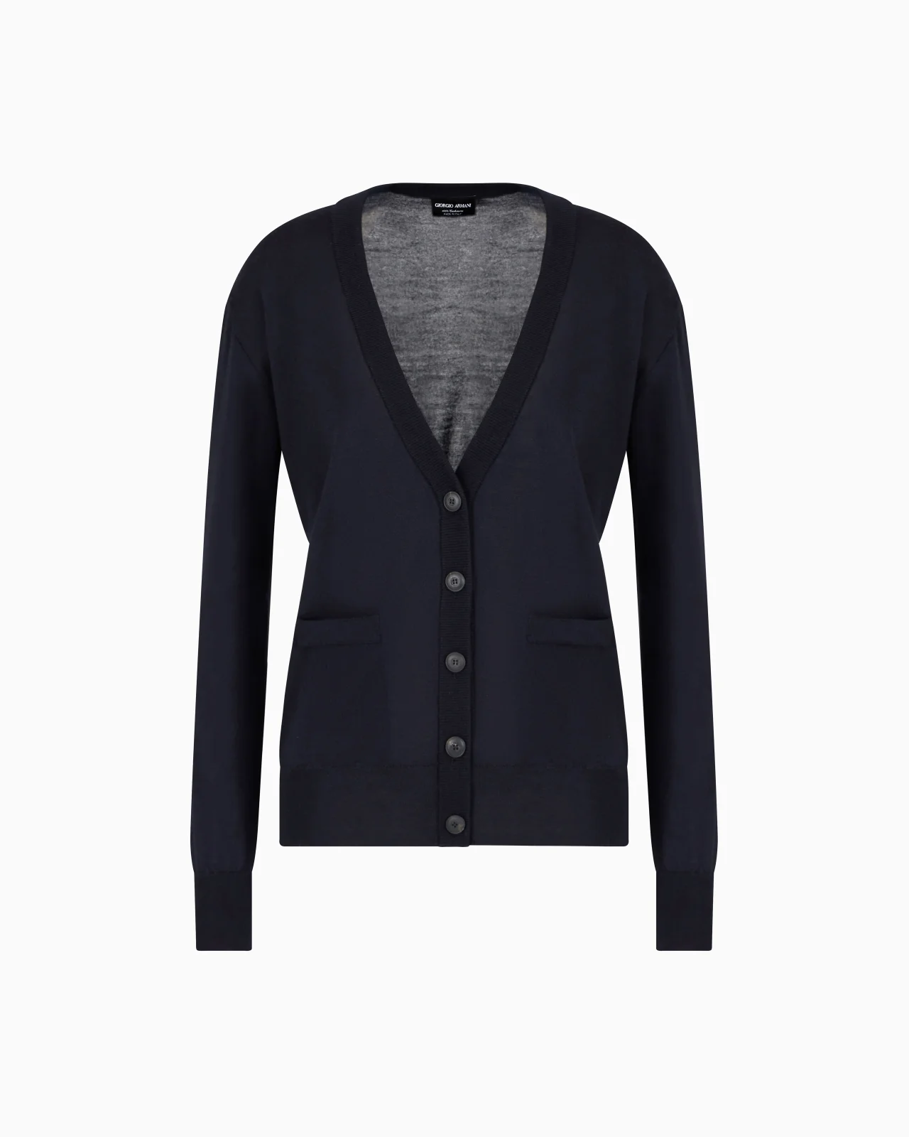 Long slim-fit cardigan made of pure cashmere with an extremely soft and warm handfeel. The style is distinguished by a deep V-neck, six-button closure and two small front pockets. A versatile and essential womenswear item, perfect with trousers or skirts. Product Code: 8NAEA1AMB1Z1UBSG Details Composition 100% Cashmere Fineness: 18 Deep V neck Six-button closure Two patch pockets Ribbed hem and cuffs Made in Italy