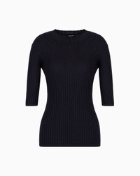 Short-sleeved crew-neck jumper made from ribbed cashmere, with clean lines and a slim fit. An essential and versatile garment, designed to adapt to various outfits for different occasions. Product Code: 8NAMA6AMB2Z1UBSG Details Composition 100% Cashmere Fineness: 12 Crew neck Short sleeves Made in Italy