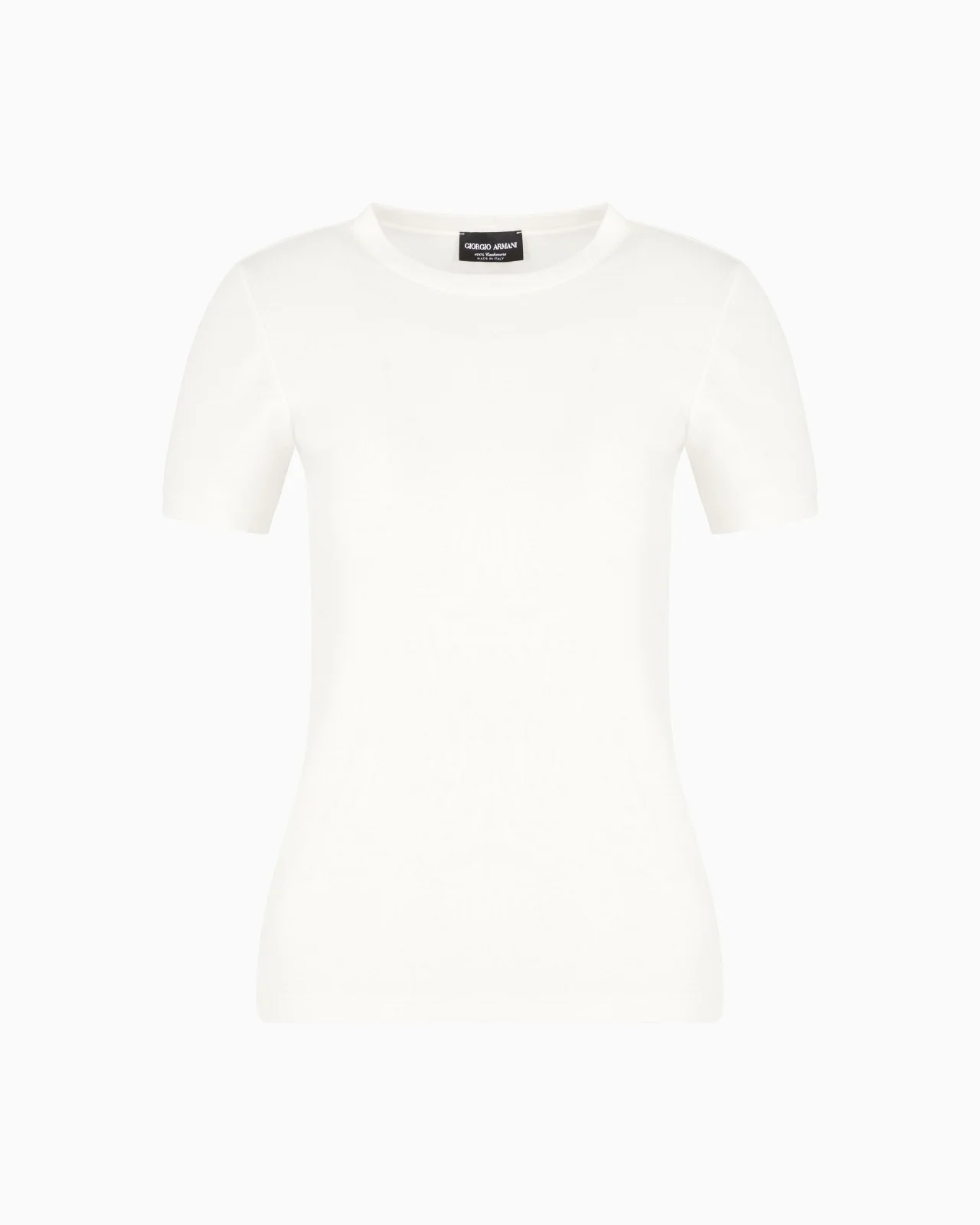 An emblem of essential elegance and always understated, this T-shirt displays iconic Giorgio Armani style through its simplicity. Made in stretch viscose jersey, this T-shirt is distinguished by its perfect fit. The garment is completed by the round neckline and seamless contours. Product Code: 8NAM96AJJCZ1U090 Details Composition 100% Cashmere Basic solid colour Rounded collar Short sleeves Fitting The model is 177 cm and is wearing size 38