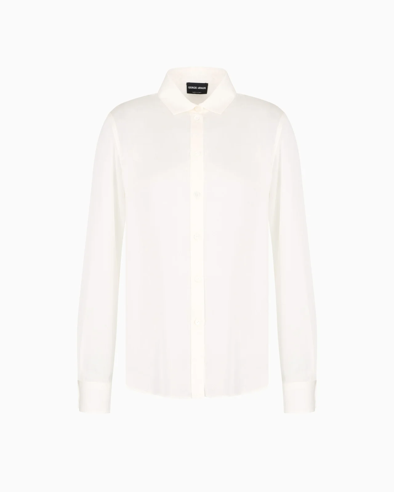 Clean and streamlined, the white shirt has always been a staple of the feminine wardrobe: it is the ideal complement for many looks and is perfect with skirts and trousers. This silk and muslin style is distinguished by its slinky, flowing fit, which adds elegance to the silhouette. Product Code: 2CHCC04GT00211U0N8 Details Composition 100% Silk Classic collar Fastened with visible mother-of-pearl buttons Single-button cuffs Back yoke Made in Italy