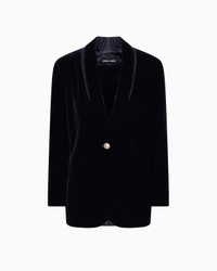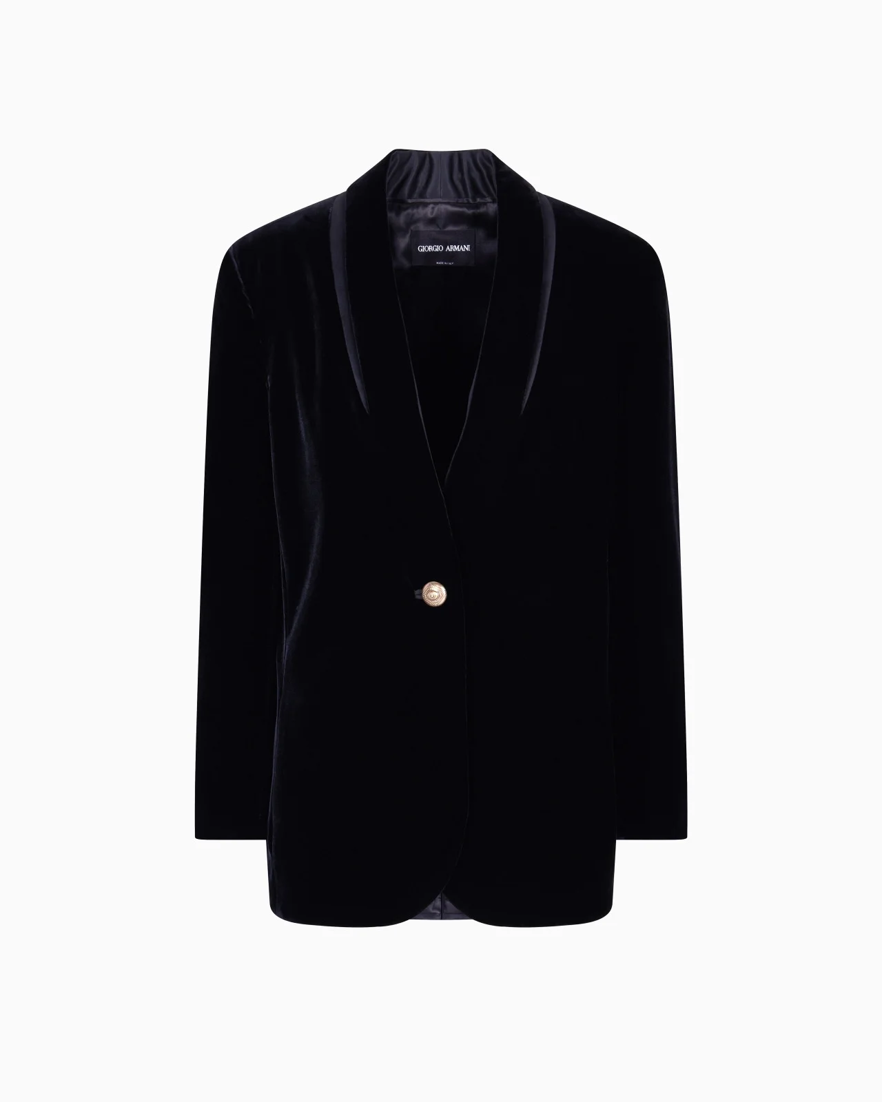 Single-breasted jacket made of smooth velvet, an iconic fabric of the brand featuring a pronounced sheen and smooth feel. Defined by shawl lapels and a single jewel button front closure, the style has a slightly elongated, relaxed, menswear-inspired silhouette. A classic design, perfect for completing formal and evening looks. Single-breasted jacket Shawl collar Single-breasted closure with one special button Two vertical welt pockets Buttons at the sleeve hem Hanging sleeves Lined Length: 69 cm from centre back Made in Italy Product Code: GW001555AF20583ZZ017