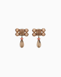 Elegant clip-on earrings made from mother-of-pearl effect resin, illuminated by a smoky quartz teardrop pendant. Available in the collection's colour palette, they embellish looks suitable for various occasions. Clip fastening Mother-of-pearl effect resin cabochon Smoky quartz teardrop pendant Made in Italy Product Code: GW002037AF19497U6032