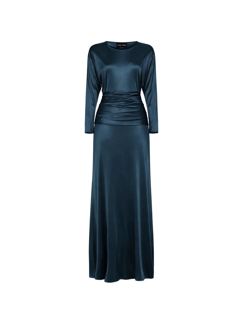 rhinestone-embellished flared dress Highlights - Blue - Crewneck - Long wide sleeves - Dropped shoulders - Rhinestone embellishment - Draped band Made in Italy Composition Viscose 100% Washing instructions Read Manufacturer Guidelines