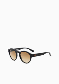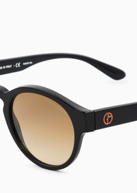 Bio-acetate panthos shape with keyhole bridge and gradient crystal lenses enriched with a new smooth wooden GA temple logo. Product Code: AR8146.L5875Q4.L150.L Details Composition 100% Acetate Frame material: bio acetate Shape: panthos Lens diameter/bridge width/temple length: 50/21/145 mm Lens material: crystal Rx-able: Yes, standard Frame color: shiny black Lens color: light brown gradient