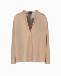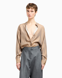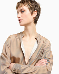 Effortless, fresh attitude for this satin shirt with a unique iridescent effect. The style has a guru collar, a buttonless polo-shirt opening and a back yoke, details that highlight its laid-back spirit. An item designed to elegantly wear on various occasions. The piece is part of the New Normal selection, an offering that reinterprets the brand’s archive looks with a modern twist. Pieces in elongated and fluid shapes and with an androgynous flavour dress the feminine silhouette with elegance for day-to-night looks. This season it comes in a natural colour palette animated by a series of chevron motif and houndstooth shapes, a clear reinterpretation of pieces "stolen" from the male wardrobe with a feminine twist. Guru collar Buttonless polo-shirt opening Long sleeves Button cuffs Back yoke Unlined Made in Italy Product Code: GW001758TE18011M6208