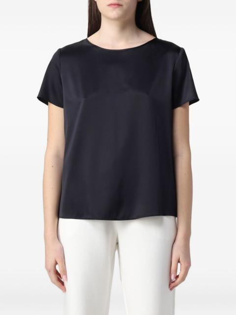satin top Highlights - Grey - Short sleeves - Crew neck - Rear button fastening Imported Composition Mulberry Silk 94%, Elastane 6% Washing instructions Read Manufacturer Guidelines