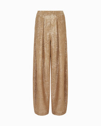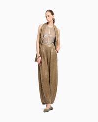 Shiny jersey trousers animated by a two-tone flocked print and embellished by the application of sequins. Designed to complete looks with a special touch, it features a smooth waistband, side zip closure and two side pockets. Perfect teamed with the matching waistcoat for a special, shimmering outfit. The piece is part of the New Normal selection, an offering that reinterprets the brand’s archive looks with a modern twist. Pieces in elongated and fluid shapes and with an androgynous flavour dress the feminine silhouette with elegance for day-to-night looks. This season it comes in a natural colour palette animated by a series of chevron motif and houndstooth shapes, a clear reinterpretation of pieces "stolen" from the male wardrobe with a feminine twist. Single-pleat trousers Smooth waistband Side zip closure Two slant pockets Length from the waist: 107 cm Made in Italy Product Code: GW002171AF19855F8026