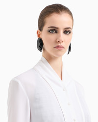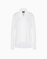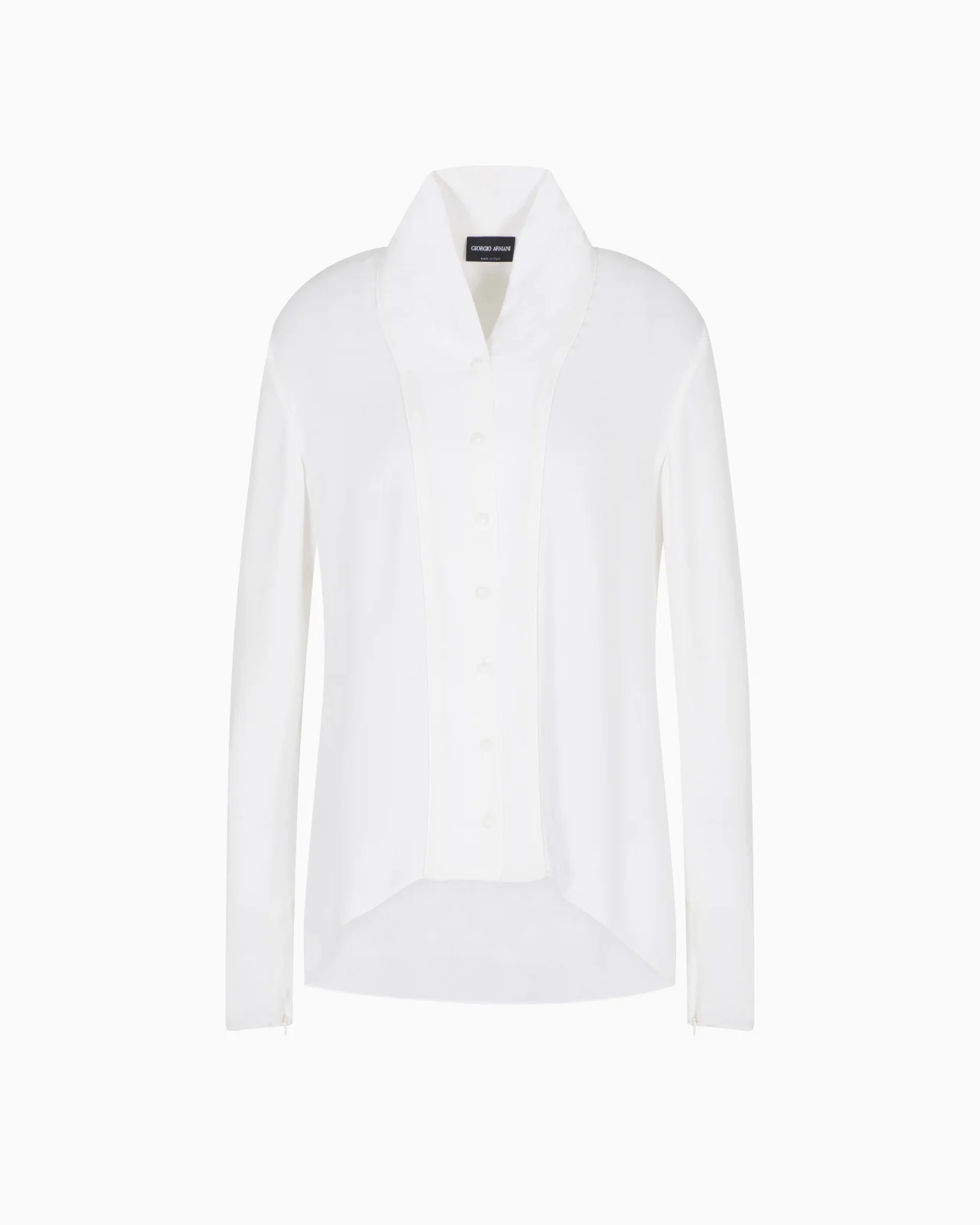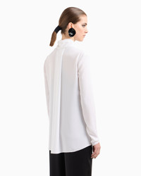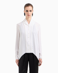 Shirt made of triple silk georgette, with slinky, fluid lines, available in white. The style features a slightly stand V neck, exposed button placket and a box pleat at the back. A sophisticated piece made from a luxurious fabric that elegantly dresses the feminine silhouette.<br>The garment is part of the Holiday selection, which plays with a minimalist colour palette of black and white, colours that have always been a symbol of sophistication. A colour choice found in the fabrics, embroideries and accessories that express the essence of Armani spirit, distinguished by clean, androgynous-inspired lines, that are still always feminine and sensual. Stand collar with V neckline Long sleeves Visible button fastening Rounded hem at the back<b>Box pleat at the back Small zip cuffs Slightly shorter at the front Unlined Made in Italy Product Code: GW001751TE10814U1144