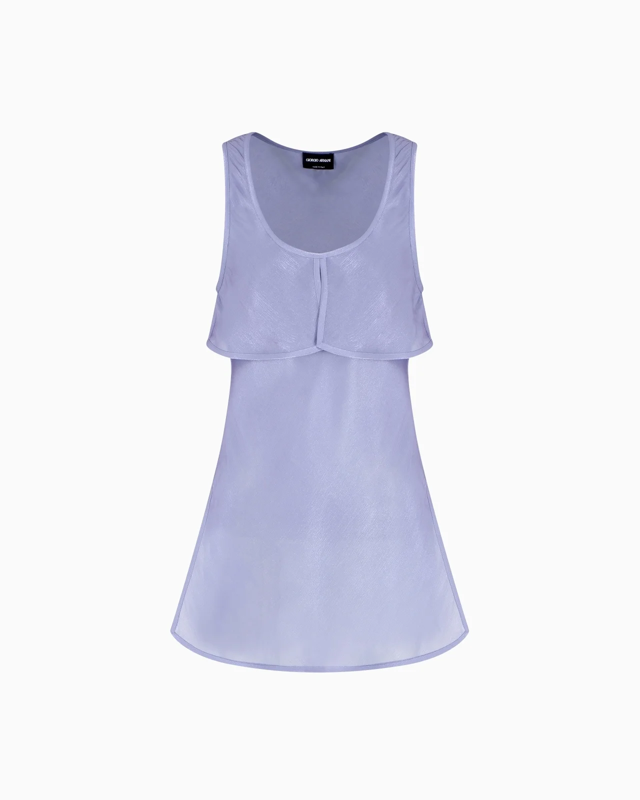 Smooth, slinky lines for this long top made from a shiny fabric with a distinctive shimmering, iridescent effect. The style has a round neckline, front peplum and side slits, adding movement. A versatile offering, perfect to pair with the matching trousers for a sophisticated, fresh look. Crew neck Sleeveless design Peplum detail Side slits Unlined Product Code: GW001290TE13893U9319