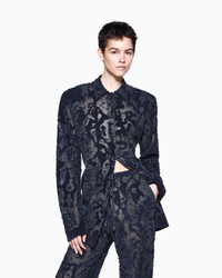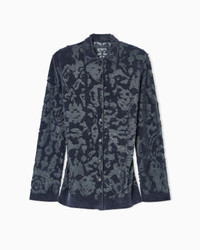 Slinky shirt jacket, available in the collection colour palette. The style, with a shirt collar and front button closure, features a refined devore finish with an abstract motif, which creates a three-dimensional effect. A special offering, perfect for pairing with the matching trousers, for a complete statement look. Fineness: 12 Shirt collar Exposed button closure Long sleeves All-over devore finish Made in Italy Product Code: GW002431AF19837F8036