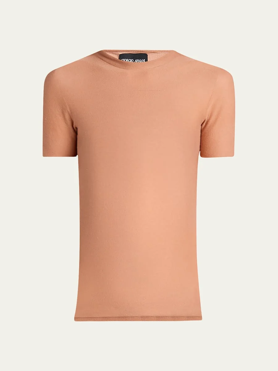 Giorgio Armani solid sweater Crew neckline Short sleeves Slim fit Pullover style Cotton/polyester Dry clean Made in Italy Online Inquiries: BGS21_B9SME| Store Inquiries: #4957288