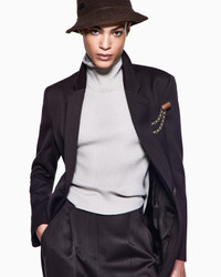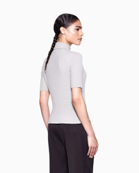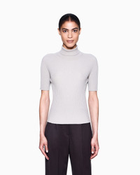 Mock-neck jumper made from cashmere, embellished with a 4x4 rib knit that enhances its natural texture and softness. Defined by its fitted silhouette and enveloping mock neck, the style has short sleeves, making it perfect for wearing under a jacket. An essential, refined design that combines the luxury of cashmere with clean lines, creating a sophisticated item that is perfect as the basis for multiple looks. Fineness: 18 Mock neck Short sleeves Made in Italy Product Code: GW002093AF19697U1102