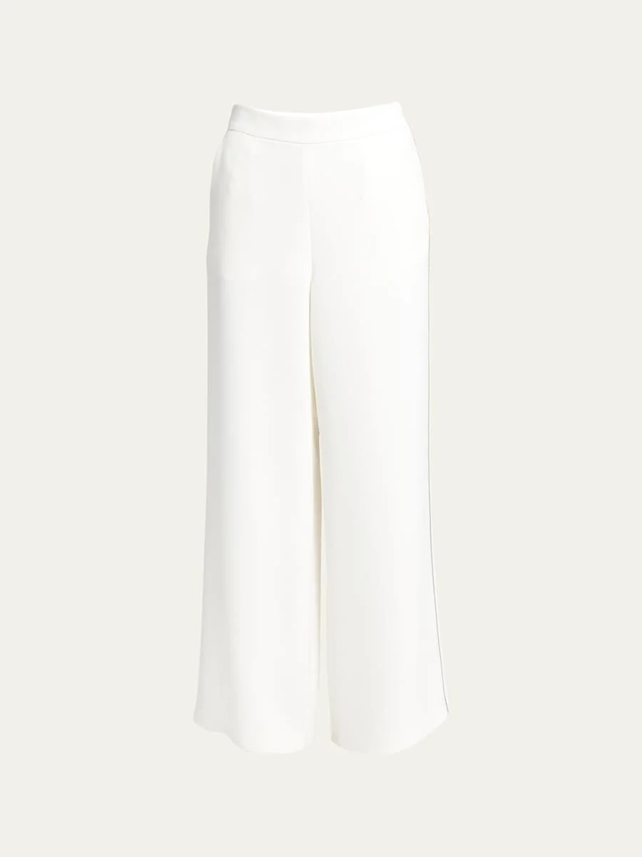 Side Piping Wide-Leg Silk Trousers