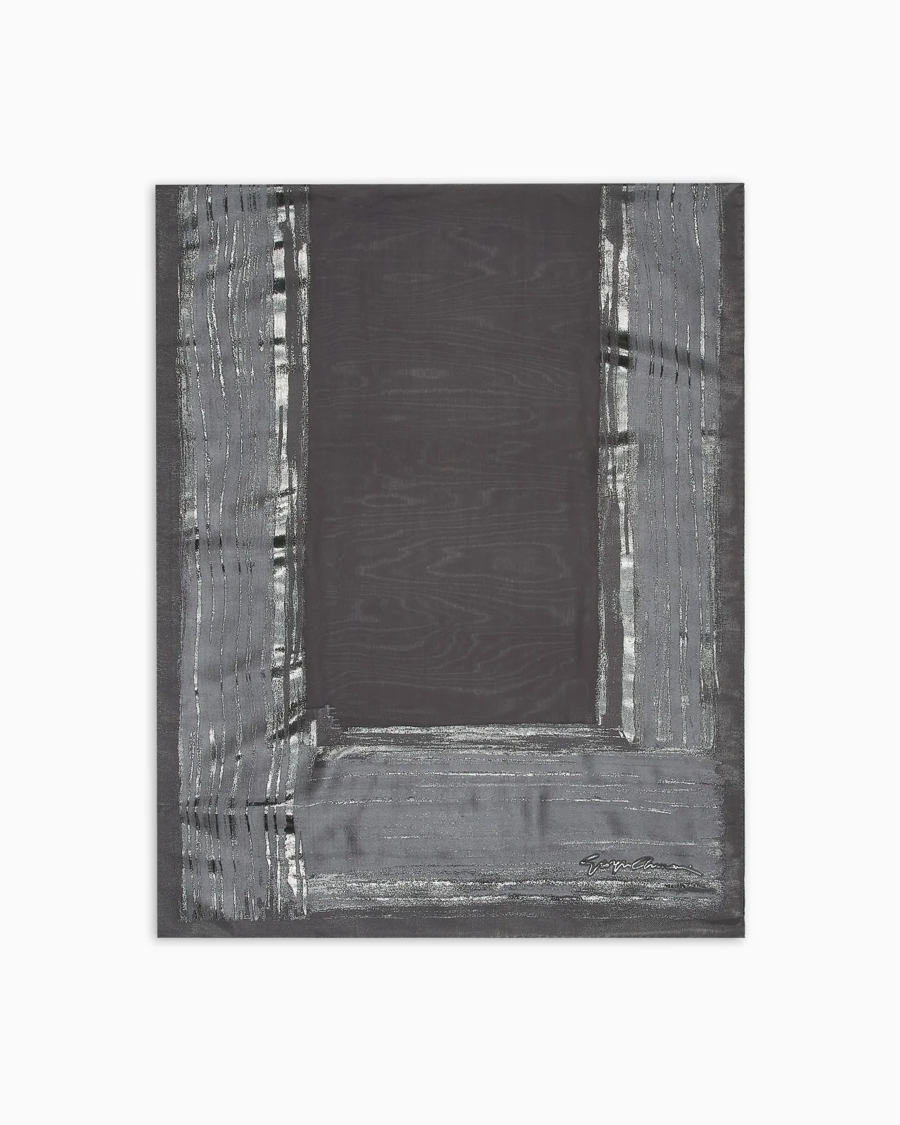 Stole made of silk, a fabric that is as light as a feather. The style is distinguished by a laminated-effect finish with irregular vertical bands, creating a play of light and texture on the surface. A special accessory, perfect for adding a bright, elegant touch to evening outfits. Matching laminated fabric inserts Measurements: 200 x 70 cm Made in Italy Product Code: GW001911AF19000U7235