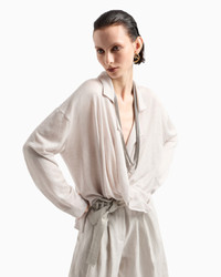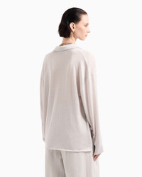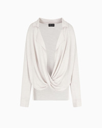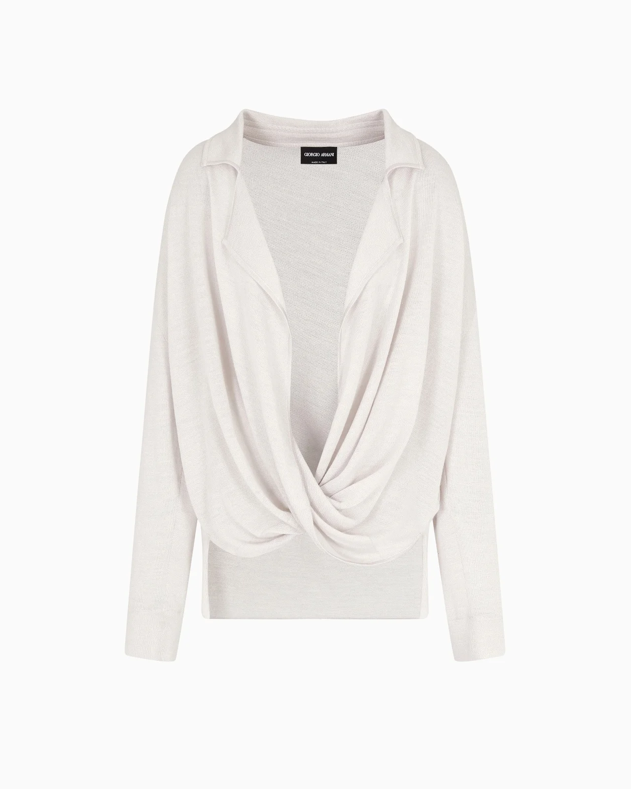 Distinctive jumper made of silk and linen, featuring a front plunging neckline with lapels and gentle front draping. A perfect piece to wear over a top or on its own, to create both casual and sophisticated looks that are ideal for daytime. Fineness: 18 Lapel collar Front draping Long sleeves Front and back asymmetry Made in Italy Product Code: GW000891AF14920U8003