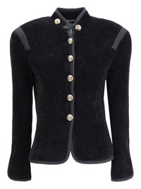 decorative button silk blazer Highlights - Black - Coreana collar - Metal shank buttons - Long sleeves - Side slit at the cuff - Side slits at the hem Made in Italy Composition Silk 94%, Polyamide 5%, Spandex/Elastane 1% Washing instructions Read Manufacturer Guidelines
