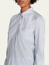 Giorgio Armani solid blouse Point collar; button front Long sleeves; button cuffs Chest patch pockets Relaxed fit Curved hem Silk Dry clean Made in Italy Model is 5'10"/177cm. Online Inquiries: BGS21_T4KZJ| Store Inquiries: #4512747