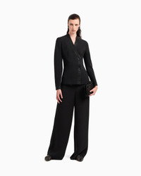 A luminous rhinestone-covered waistband embellishes these straight trousers made from silk cady. The style has a slinky fit that drapes elegantly over the silhouette and features a concealed zip closure and two side pockets. A sophisticated, exquisite style designed to make evening looks shine. Smooth waistband with heat-adhesive rhinestone embroidery Zip-and-hook closure Two side welt pockets Two side welt pockets Unlined Made in Italy Product Code: GW000669AF15921ZZ017