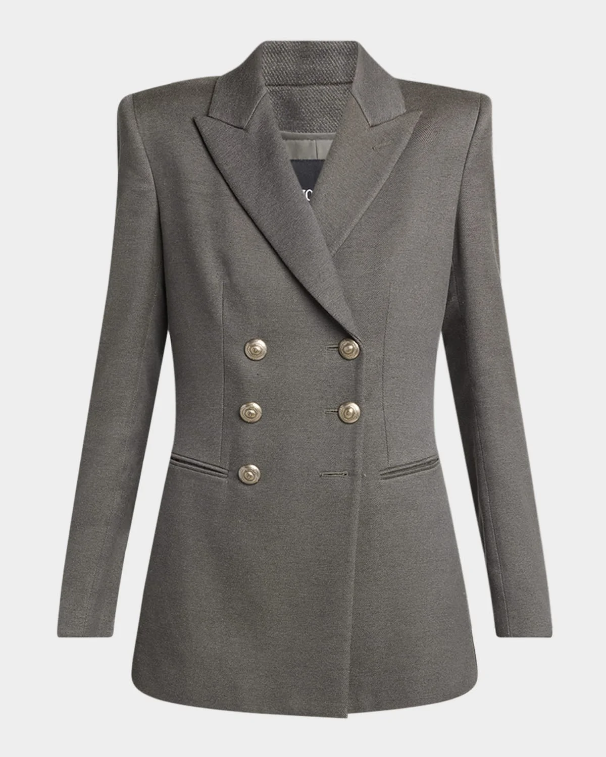 - Giorgio Armani blazer jacket in silk-blend - Peak lapels; double-breasted front - Long sleeves; button cuffs - Padded shoulders - Hip welt pockets - Slim tailored it - Walking vent back - Button closure - Silk/viscose/cotton - Dry clean - Made in Italy