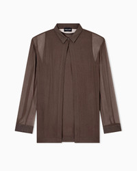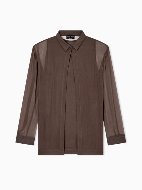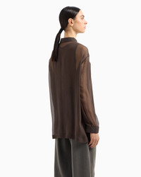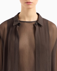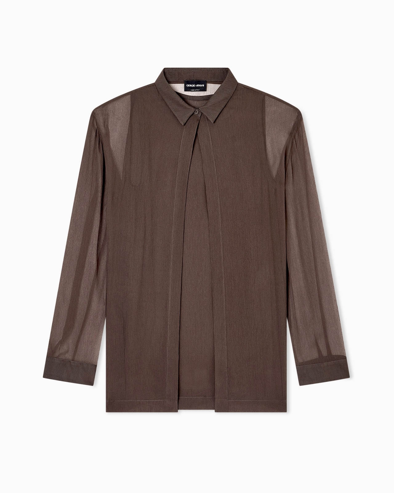 Loose, fluid shirt made of silk crepon available in the collection’s colour pallette. The casual style features loose volumes, a pointed collar and a one-button closure that allows the matching crew-neck top to be seen. A style designed for daytime looks, perfect paired with slinky, lightweight trousers. Point collar Exposed button closure Long sleeves Side slits Paired with a crew-neck top Made in Italy Product Code: GW000689TE13823U8119
