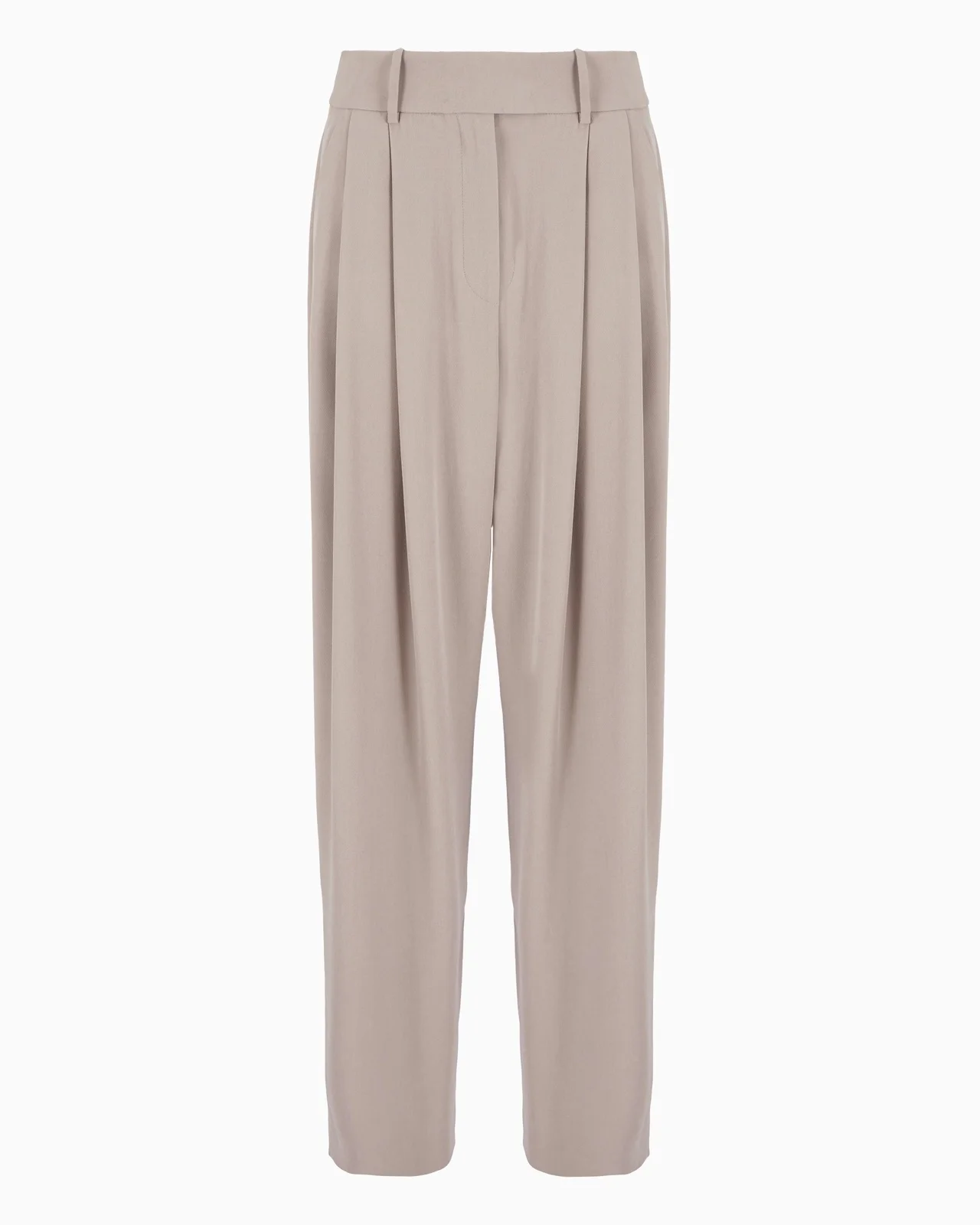 These menswear-inspired two-pleat trousers are crafted from washed silk. The style, featuring a waistband with belt loops and a hook and zip fly closure, is distinguished by its slinky, relaxed fit that adorns the silhouette without constraint for a relaxed yet chic look. Product Code: GW000163TE108401U6092 Details Composition 100% Silk Waistband with belt loops Concealed zip closure Front pleats Two welt pockets Unlined Made in Italy Fitting The model is 178 cm tall and is wearing size 38/S
