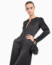 Refined silk jumpsuit, available in an intense collection black that enhances the brilliance of the yarn. It has a minimalist construction with long sleeves, a front zip fastening and a wide leg. Illuminated by edges embroidered with black rhinestones and silver stars, which adorn the neckline, placket and cuffs like jewellery, it is an elegant and sophisticated offering, perfect for the evening.<br>The piece is part of the exclusive collection that celebrates the connection between Giorgio Armani and the world of Hollywood. A colour palette of deep blues combines with a profound and ever-elegant black, to create a sparkling, luxurious selection inspired by the limelight and most exclusive Hollywood parties. Extremely sophisticated pieces with iconic lines are made of velvets, silks and satins enlivened by crystal and rhinestone embellishments and refined workmanship. Looks for him and her, designed for evenings and special occasions. Crew neck Front zip closure Long sleeves Wide-leg trousers Two side pockets Embroidered details with black rhinestones and small silver stars applied at the neckline, placket and cuffs Unlined Length: 110 cm from the waist Made in Italy Product Code: GW001488AF17832ZZ017