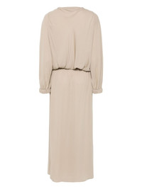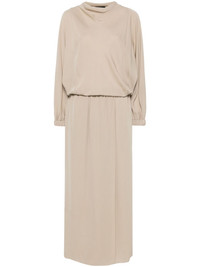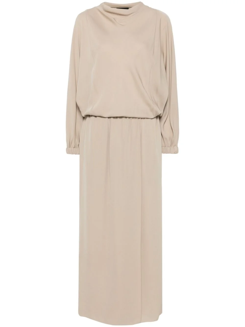 silk midi dress Highlights - Sand beige - Silk - Crepe texture - Cowl neck - Long sleeves - Elasticated cuffs - Elasticated waist - Two side inset pockets - Side slit - Unlined - Straight hem - Mid-length Made in Italy Composition Organic Silk 100%