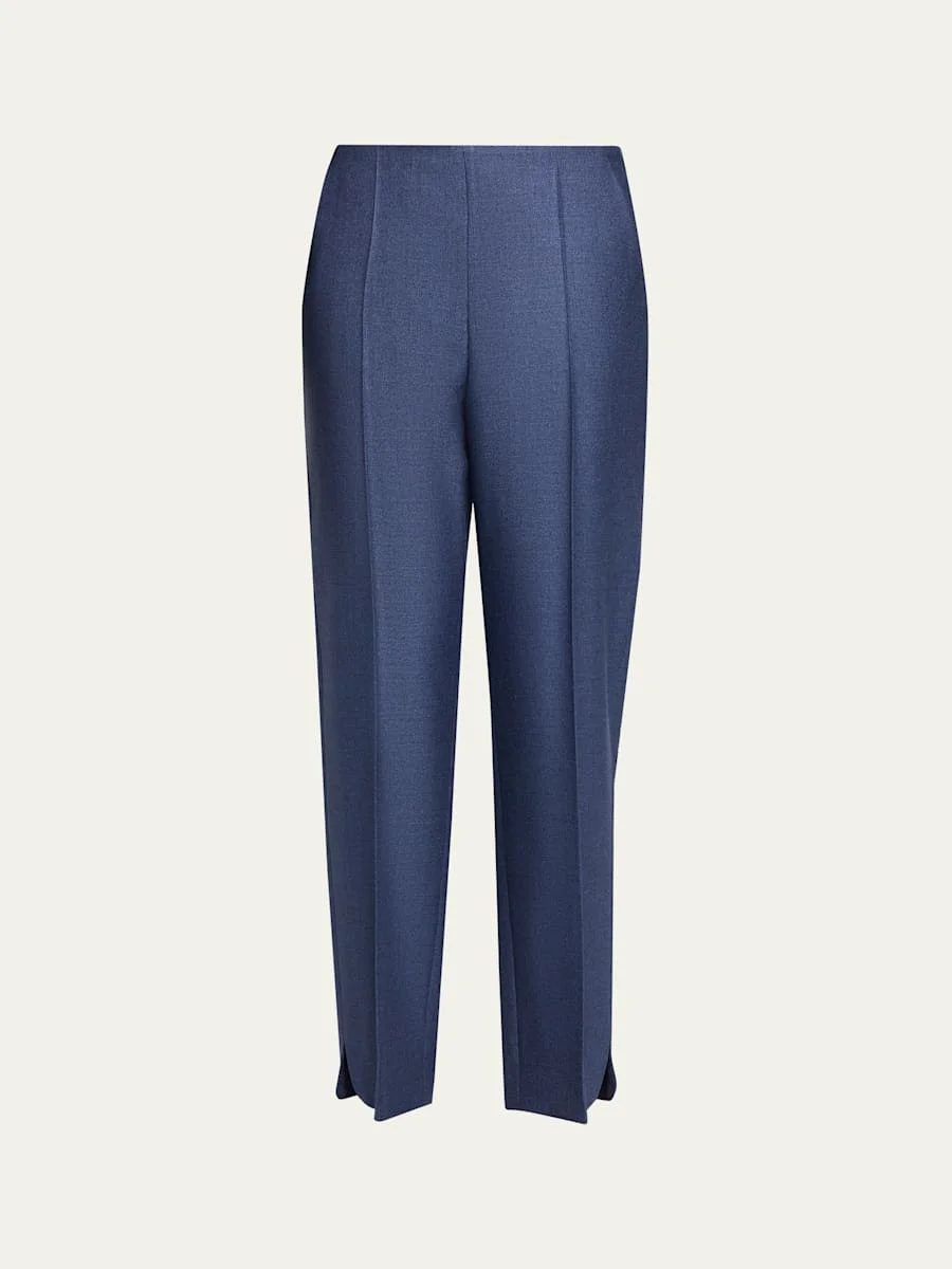 Crafted from woven silk, these trousers from Giorgio Armani feature pressed front and back creases and slits at the hem Mid rise sits high on hip Angled side slip pockets Straight legs Ankle length Side slits Invisible side zip Silk Dry clean Made in Italy SIZE amp; FITModel measurements: 5'10" tall Model is wearing a US size 4/Small
