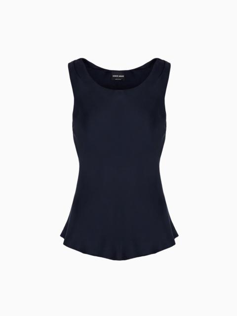 Minimalist shape, refined fabric. A crew-neck top with classic, simple lines, made of luxurious pure silk. Product Code: 8CHCKZ30TZ1361U1SS Details Composition 100% Silk Crew neck Sleeveless Made in Italy Fitting The model is 178 cm tall and is wearing size 38/S