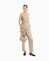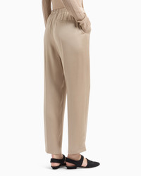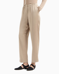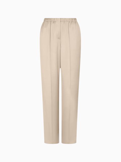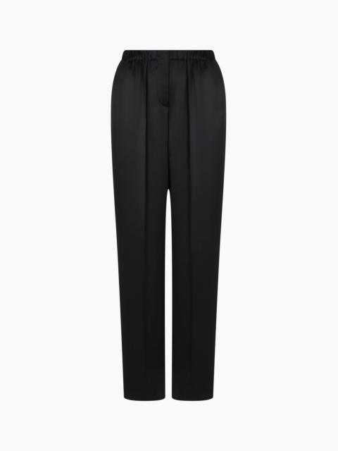 Relaxed-fit trousers made from lustrous double silk satin. The style features two side pockets and an elasticated waistband that highlights the comfortable, versatile personality of the style. A relaxed, versatile piece that complements many looks to perfection. Elasticated waistband Front trouser crease Two side welt pockets Double welt back pocket Unlined Made in Italy Product Code: GW000643TE10101U8048