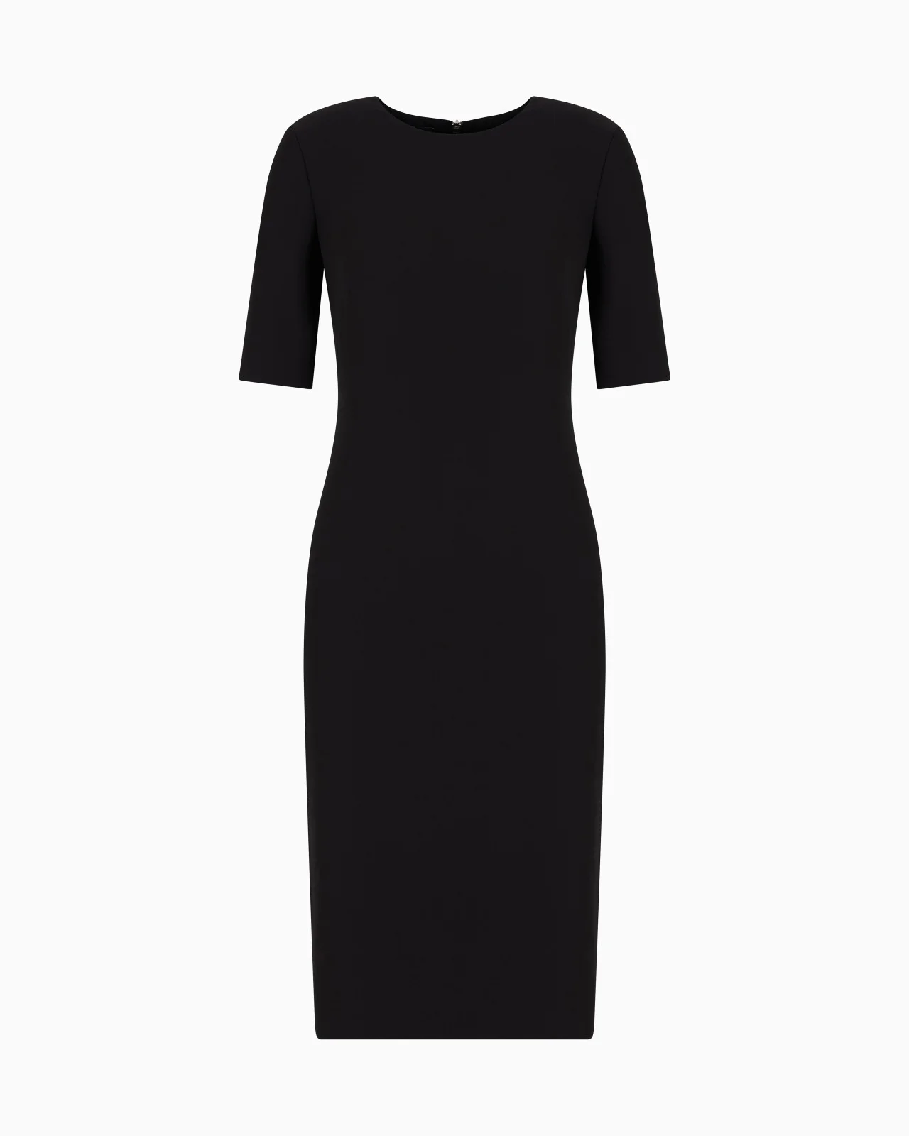 Giorgio Armani has always been an icon of elegance and once again creates a sophisticated and timeless garment that accentuates feminine beauty with an understated style. Made from mulberry silk, considered the finest silk due to its regular, ultra-fine fibers, shine and strength. This model, with understated lines, has a round neckline, short sleeves and a contrasting zipper on the back. The garment is slim-fit: we recommend buying a size up from your usual. Product Code: 8CHVA00RT001O1UC99 Details Composition 100% Silk Crepe Darts Basic solid color Short sleeves Round collar Rear zip closure Rear slit Fully lined Fitting The model is 178 cm tall and is wearing size 38/S
