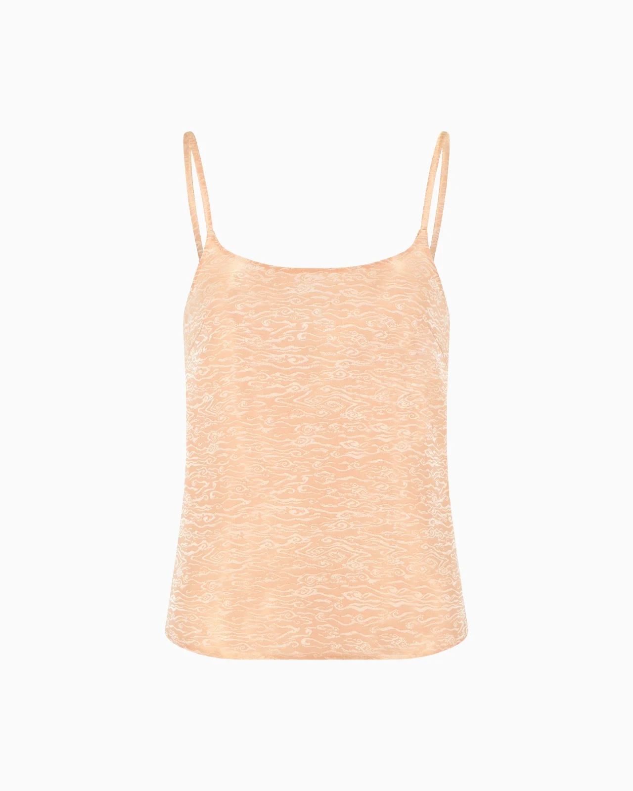Bright top made of lurex jacquard silk and viscose, presented in a warm clay colour. The style is distinguished by its extremely clean lines and features a round neckline and thin shoulder straps. An offering to team with the collection’s short jackets and fluid trousers, perfect for special looks. Thin shoulder straps Rounded neckline Urban tiger jacquard motif Concealed zip fastening Unlined Made in Italy Product Code: GW001477TE14276M6094