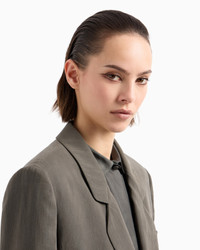 Elegant single-breasted jacket, made of exquisite, washed silk in the collection’s colour palette. The style features notched lapels, a concealed button closure and a special decorative striped motif at the cuffs. A refined piece, perfect to pair with the trousers in the same fabric, to create fresh, sophisticated looks. Single-breasted jacket Notched lapels One-button single-breasted closure Two front welt pockets Decorative striped detail on sleeves Partially lined Length: 70 cm Product Code: GW000844TE13824U8119