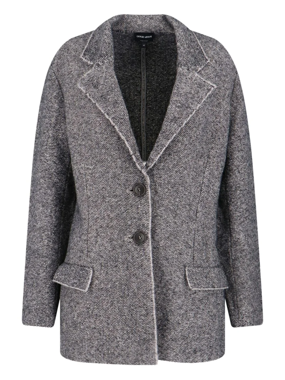 button single-breasted blazer Highlights - Grey - Textured - Button fastening - Notched lapels - Front flap pockets - Long sleeves Made in Italy Composition Cotton 31%, Polyamide 30%, Alpaca Wool 15%, Wool 11%, Cashmere 8%, Silk 5% Washing instructions Read Manufacturer Guidelines