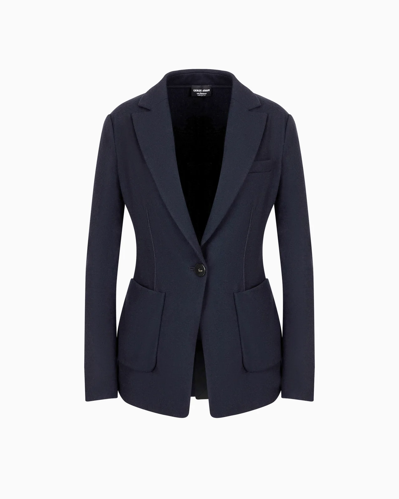 The softness of pure cashmere jersey relaxes the silhouette of this one-button single-breasted jacket. With notched lapels, two welt pockets and a chest pocket, the style can be worn with loose-fitting trousers and a crew-neck jumper for a look that is casual yet sophisticated. Product Code: 8NAG91AJKEZ1UBSG Details Composition 100% Cashmere Notched lapels Single-breasted closure with one button Two patch pockets Breast welt pocket Buttoned cuffs Central back vent Length: 66 cm Made in Italy
