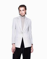 A garment that never loses its appeal: the single-breasted jacket is an essential in any woman’s wardrobe. This stretch double-faced wool style stands out thanks to a slim fit that elegantly follows the female form and features two patch pockets that soften the lines over the upper hip. Essential and iconic, it is perfect for completing numerous looks. Single-breasted jacket Notched lapels One-button single-breasted closure Hanging sleeves Two patch pockets Single-button cuffs Central back vent Lined Length: 68 cm Made in Italy Product Code: GW001905TE10117U1102
