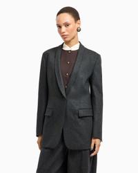 Single-breasted jacket made of cosy wool and cashmere flannel, with an elegant, minimalist silhouette. The style features a covered button closure, two flap pockets and shawl lapels. A versatile, sophisticated offering, designed for completing a wide array of looks, perfect teamed with the matching trousers. Single-breasted jacket Shawl collar Single-breasted closure with one covered button Two front flap pockets Side slits Cuffs with slits Lined Length: 72 cm Made in Italy Product Code: GW001951TE10537U8131