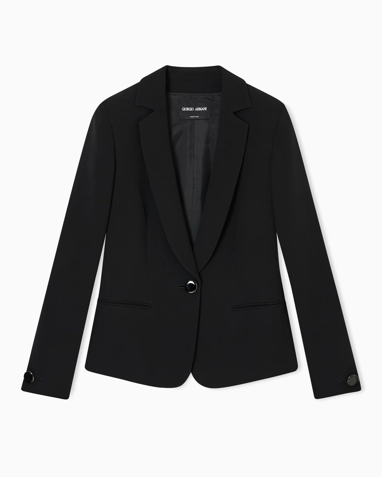 A garment that never loses its appeal: the single-breasted jacket is an essential in any woman’s wardrobe. This silk cady style stands out thanks to a slim fit that elegantly follows the female form and features two patch pockets that soften the lines over the upper hip. Essential and iconic, it is perfect for completing numerous looks. Notched lapels Two-buttoned, single-breasted closure Two patch pockets Single-button cuffs Central back vent Lined Made in Italy Product Code: 3CHGG18PT001OUC99