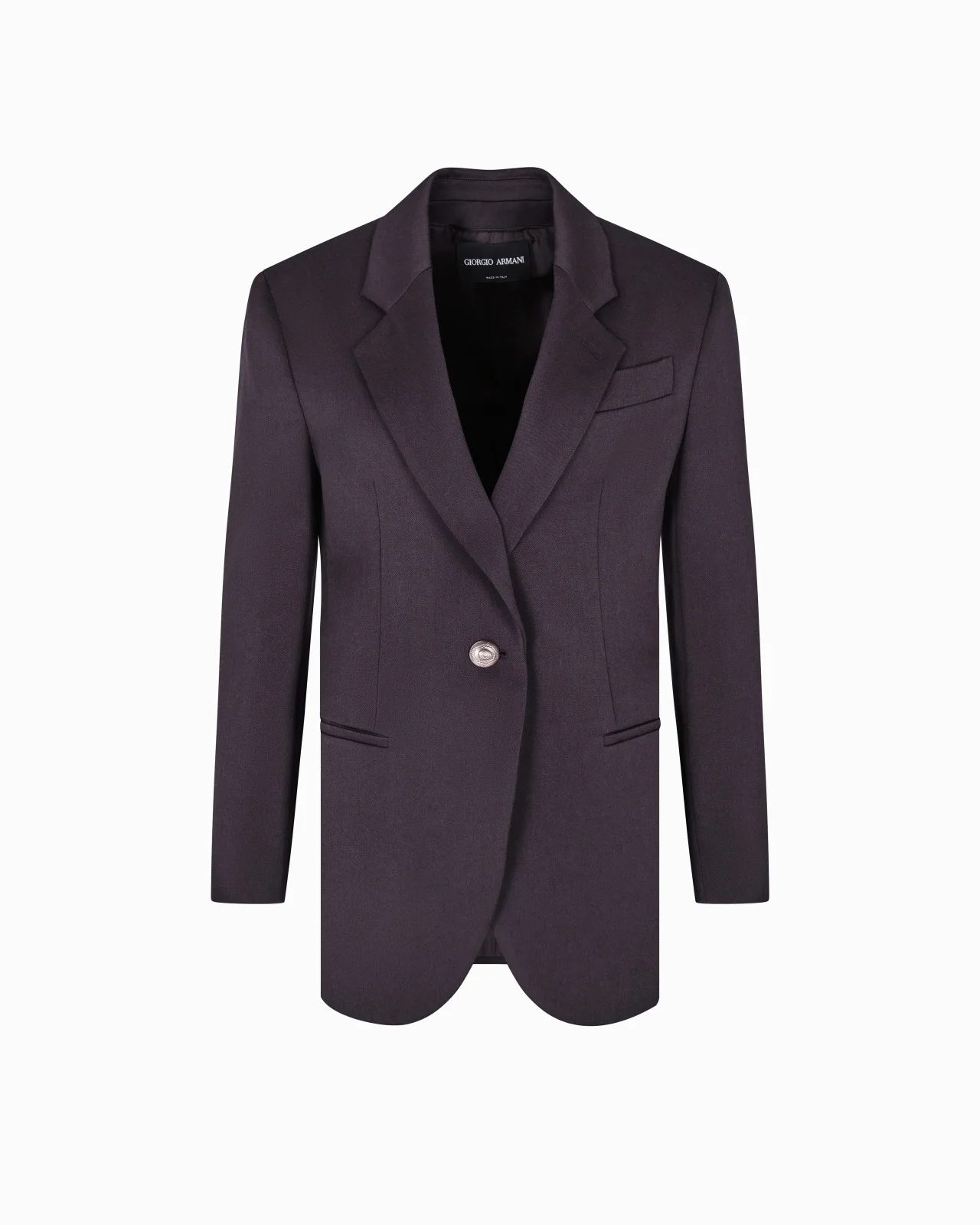 Single-breasted jacket made of wool, embellished with an exposed metal button and welt pockets. Defined by notched lapels, the style has a clean, slightly contoured shape that elegantly dresses the silhouette. A classic, versatile piece, perfect teamed with the waistcoat in the same fabric to create a masculine look. Single-breasted jacket Notched lapels Single-breasted closure with one special button Two front welt pockets Breast welt pocket Lined Length: 72 cm Made in Italy Product Code: GW001949TE10936U8130