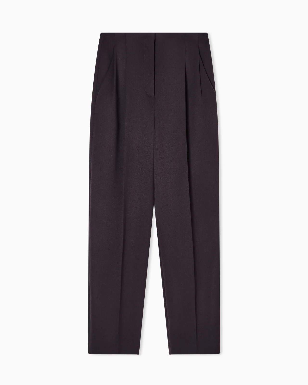 Single-pleat wool trousers featuring an essential construction, with a smooth waistband, hook and zip fastening and side pockets. A perfect offering to pair with a shirt from the collection or to wear with the matching jacket for a sophisticated complete look. The piece is part of the New Normal selection, an offering that reinterprets the brand’s archive looks with a modern twist. Pieces in elongated and fluid shapes and with an androgynous flavour dress the feminine silhouette with elegance for day-to-night looks. This season it comes in a natural colour palette animated by a series of chevron motif and houndstooth shapes, a clear reinterpretation of pieces "stolen" from the male wardrobe with a feminine twist. Single-pleat trousers Smooth waistband Zip closure Two side pockets Single back welt pocket Unlined Length: 115 cm Product Code: GW001569TE10936U8130