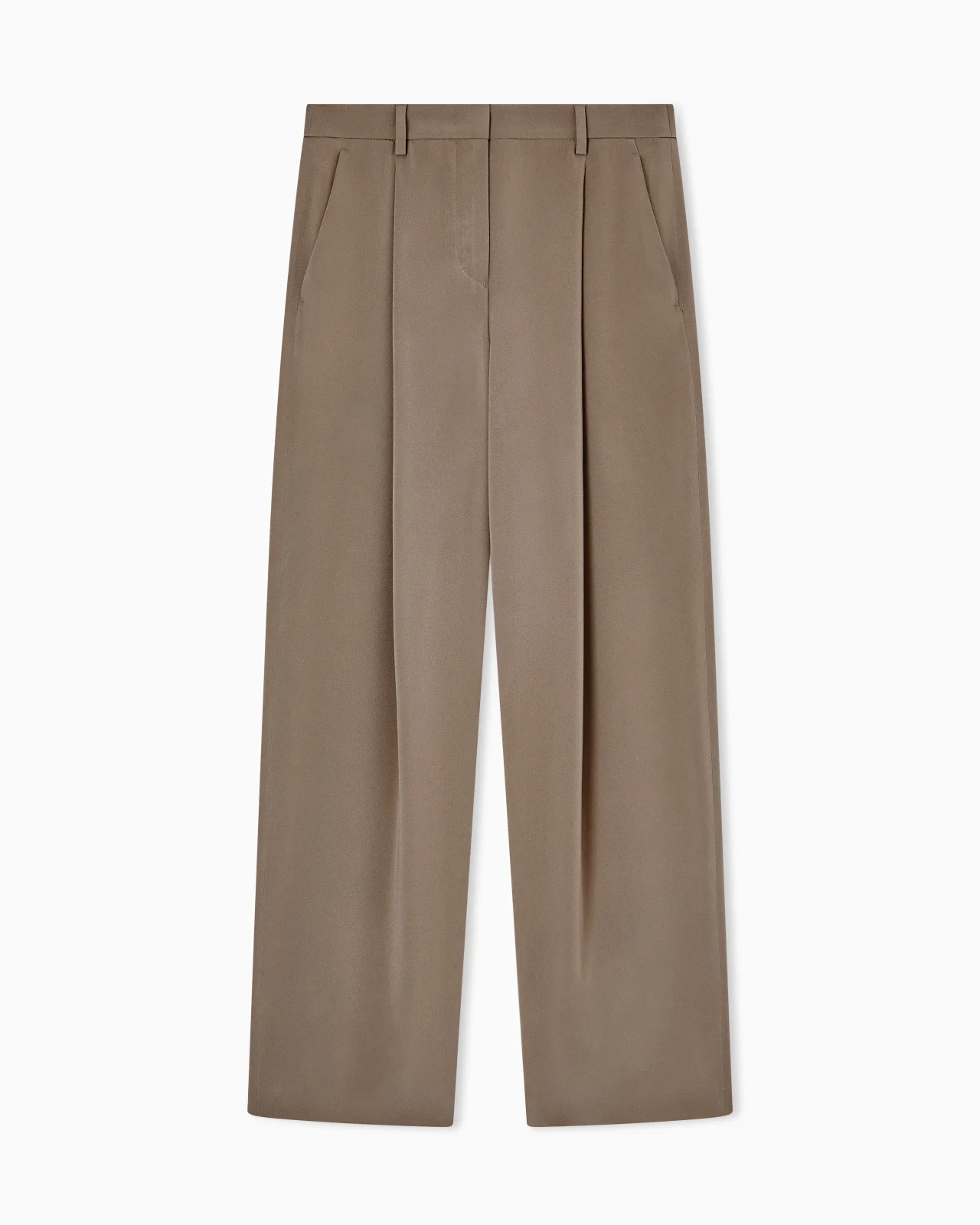 Silk crepe trousers. A single-pleat style with side pockets that has a sophisticated allure. Perfect paired with jackets and trousers for refined and elegant looks. The piece is part of the New Normal selection, an offering that reinterprets the brand’s archive looks with a modern twist. Pieces in fluid shapes and with an androgynous flavour dress the feminine silhouette with elegance for day-to-night looks. This season it is presented in a natural colour palette with a sophisticated and authentic simplicity. Waistband with belt loops Button and zip fastening Two side pockets Single back welt pocket Length: 115 cm Made in Italy Product Code: GW002793TE20148U6252