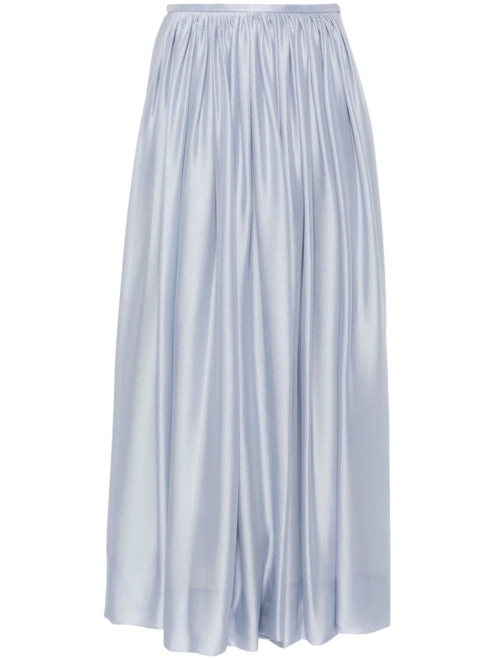 silk maxi skirt Highlights - Powder blue - Silk - Textured finish - Ruched detailing - Draped detailing - Internal logo tag - Full lining - Long length - Straight hem - Concealed side zip fastening Made in Italy Composition Outer: Silk 100% Lining: Silk 100% SIZE & FIT Model measurements Height 5 ft 9 in(1.75 m) Bust/Chest 34.64 in(88 cm) Hips 36.61 in(93 cm) Waist 26.37 in(67 cm) FittingInformation This maxi-length skirt is intended to be worn high on the waist Made from a lightweight non-stretch fabric This piece fits true to size – take your usual size
