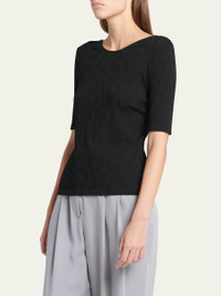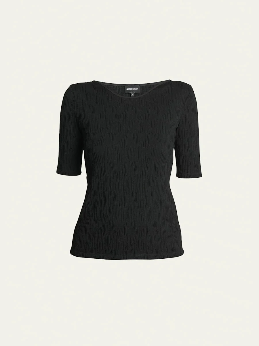 Giorgio Armani textured jersey top Crew neckline Short sleeves Slim fit Pullover style Viscose/nylon/polyamide/elastane Dry clean Made in Italy Model is 5'10"/177cm. Online Inquiries: BGS21_T5D9F| Store Inquiries: #4690365