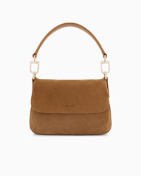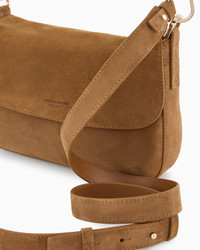 A sophisticated interpretation of the iconic la Prima bag created by Giorgio Armani in 1995, with a softer shape. This small suede handbag recalls the world of tailoring, with loose, deconstructed lines highlighted by topstitched details that accentuate its full, unstructured volume that is so closely associated with Armani ready-to-wear. Embellished by metal clips that allow for a quick change of shoulder strap for a cross-body option, this handbag has a suede-lined interior with a patch pocket closed by a magnetic clasp and a back pocket that is perfect for holding a mobile phone. An exquisite accessory curated down to the last detail, available in versatile shades. Product Code: GW001446AF141861U6305 Details Composition 100% Bovine leather Flap closure with covered central magnetic button Nappa-leather handle with clip detachment Second nappa-leather shoulder strap for wearing two ways Lined with matching suede Inner pocket Light gold plating One exterior back pocket with press-stud closure Heat-stamped Giorgio Armani logo Measurements: 26.5 x 18.5 x 5.5 cm Made in Italy