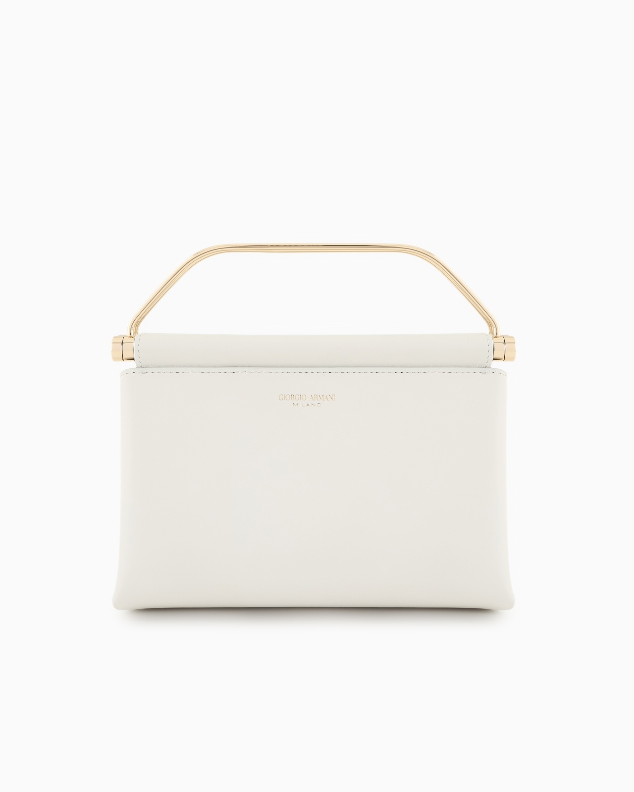 A heritage-inspired piece that recalls some of the brand’s hallmark style, such as clean lines and vintage allure. Made of leather, it features a snap closure, gold-coloured metal handles and a distinctive strap that can be removed using small logo metal plates, a functional and aesthetic detail that distinguishes the line. A exceptionally sophisticated luxurious accessory, perfect for the evening. Double metal handle Snap opening One internal patch pocket Adjustable and detachable shoulder strap with small metal logo plates Measurements: 14.5 x 21 x 8.5 cm Made in Italy This bag is perfect for holding your lipstick, phone, card holder and keyring Product Code: GW000721AF15487U1094