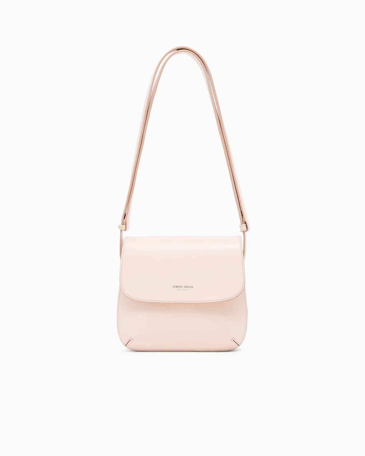 This item features rounded lines and soft, pleated edges. The shoulder strap can be adjusted to three different lengths. This multi-functional bag can be worn over the shoulder or across the body. Faux-suede microfibre lining and light golden plating. A personalised side loop adds a touch of sheen. The inside features three small pockets, a card holder, lipstick compartment and metallic mirror with its own pocket. The Giorgio Armani MILANO logo is featured as elegant golden branding on the outer flap. Product Code: Y1E138YTF4A180053 Details Composition 100% Bovine leather La Prima bag The shoulder strap can be adjusted to three different lengths with its button-stud closure Magnetic buttoned closure Two inner compartments Smooth leather card holder Lipstick holder Leather pocket with logo mirror Measurements: 20 x 16 x 12 cm Made in Italy