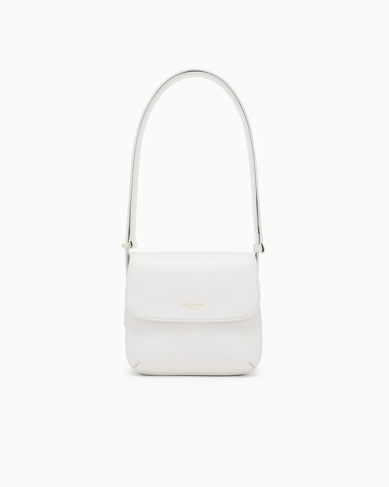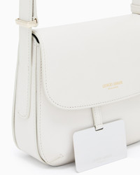 This item features rounded lines and soft, pleated edges. The shoulder strap can be adjusted to three different lengths. This multifunctional bag can be worn over the shoulder or crossbody. Faux-suede microfibre lining and light golden plating. A personalised side loop adds a touch of sheen. The inside features three small pockets, a card holder, lipstick compartment and metallic mirror with its own pocket. The Giorgio Armani MILANO logo is featured as elegant golden branding on the outer flap. Embossed logo Shoulder strap adjustable to three different lengths Magnetic buttoned flap closure Microfiber lining The inside features a card holder, lipstick compartment and vanity mirror with its own slot Dimensions: 20 x 16 x 12 cm Made in Italy Product Code: Y1E138YTF4A80138