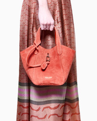 Small handbag made of suede, available in the collection colour palette. The style combines a square shape with a deconstructed, unlined construction with a draped look. Featuring a distinctive metal ring and snap-hook closure, it is embellished with a practical zipped, detachable internal pouch perfect for your mobile phone. A versatile, feminine offering, designed for everyday use, perfectly in keeping with the ready-to-wear colours and inspirations. Double handles Ring and snap-hook clasp Inner zip pouch, small patch pocket and hot-stamped logo Unlined Measurements: 21.5 x 30 x 16 cm Made in Italy Product Code: GW000820AF14186U5027