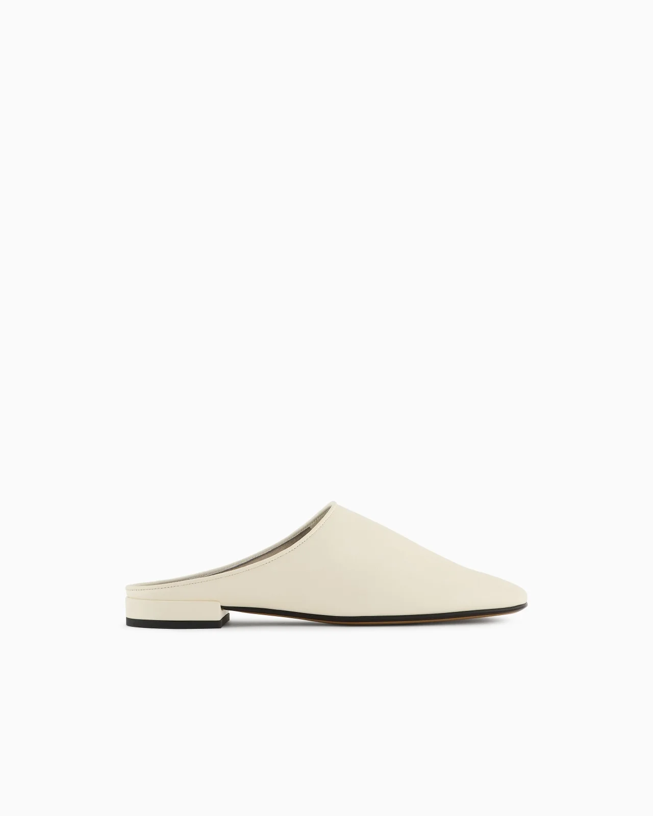 Mules made of calfskin with a minimalist aesthetic that sit along the silhouette of the foot, available in a versatile colour palette. The amazing suppleness of the leather is a feature of the style, making this footwear extremely light and comfortable to wear. The Giorgio Armani logo on the insole, inspired by the labels of the brand’s sophisticated clothing, customises this footwear. The offering is part of the Giorgio Armani x 10 Corso Como collection, a current, versatile selection of footwear featuring light and refined shapes in a classic style. Comfortable and minimalist flat styles, reflecting Armani’s iconic androgynous aesthetic, available in supple leather or fabrics with special variations, perfect for multiple occasions and designed for wearing day-to-night. Square toe Leather insole with stitched logo label Nappa-leather lining Natural leather sole Overlapping cupped heel Heel height: 1 cm Custom box with dedicated dust bag Made in Italy Product Code: X1R035XF84200894